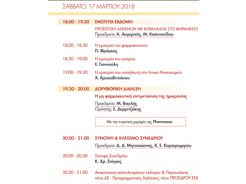 Pharmazac a Member of the Hellenic Association of Pharmaceutical Companies, announces the completion of the successful Conference of the Hellenic Society of Headache, that took place on 15 – 17 of March 2018 at the Museum of Cycladic Art in Athens.